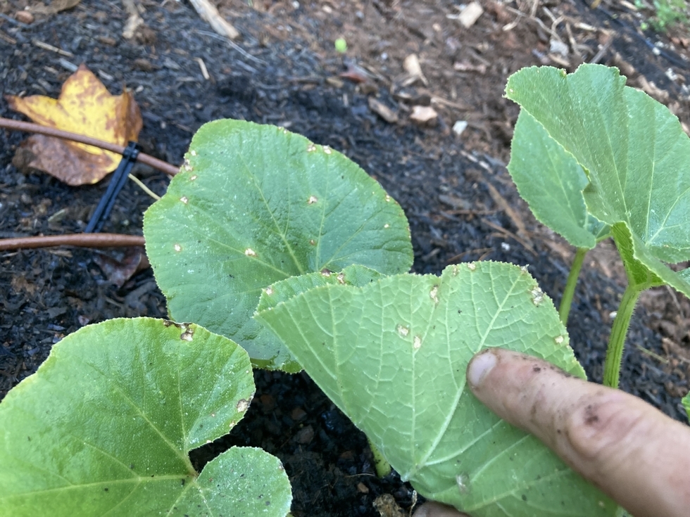 lesions on other plants in the garden. jarradhale variety pumpkin i think