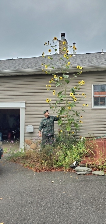 This wild sunflower self sown in the rock pile in the driveway. Very little soil in that spot.