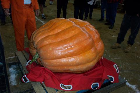 This pumpkin from Dedham, MA was disqualified due to a hole.