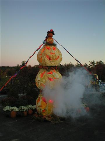Carved Giant Pumpkin Totem Pole by Scott Cully.