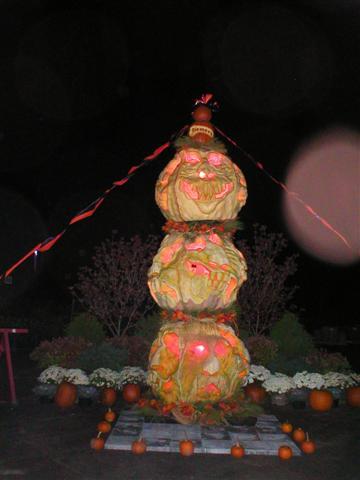Carved Giant Pumpkin Totem Pole by Scott Cully.
