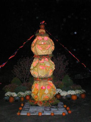 Carved Giant Pumpkin Totem Pole by Scott Cully.
