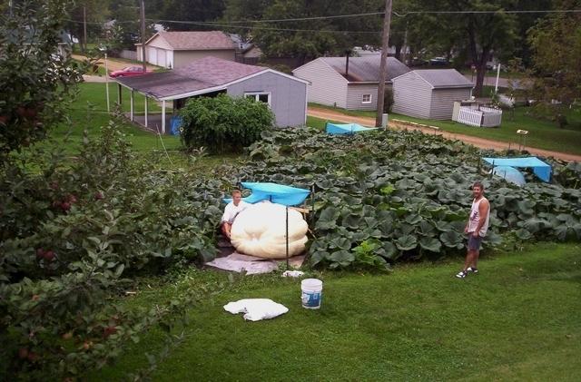 A shot of the plant with Beth and I milling around. Armstrong 1030 fruit covered to the right in the pic.