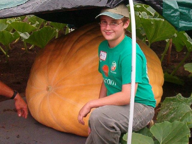 Spencer Pope of Kennebunk, ME poses with a NH giant at the 2004 summer picnic.