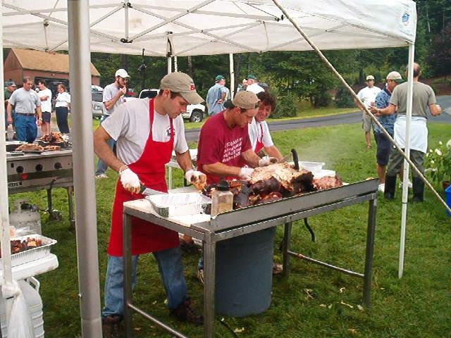 Slabbing up the Roast Pig, Roast Beef and Hams..These folks did an excellent job with the food.