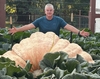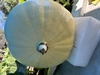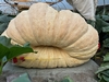 Charlie Bernstrom just texted me & asked how The Slunger is doing? I guess I've been neglecting my Slunger updates, probably because I can't get a picture that really does it justice. It isn't tall & photogenic like Cole Hocker the Pumpkin. The Slunger is white with a greenish tinge & is about six feet wide & six feet long. Its overall shape reminds me of an aircraft carrier. My friend Kirk Mombert (2 time Half Moon Bay winner from back in the 1990's) says it is going to outweigh Cole Hocker by a mile. I guess they used to weigh pumpkins in mileage back then. This pic might give you some idea of how big it is. I'm standing next to it taking the pic with my phone reaching as high above it as possible & this is all that fits in the frame. Yes, The Slunger is a bad a$$ pumpkin. I think it will finish out at about 490� & will be about 13% heavy. I'm afraid to even put those numbers into the OTT calculator. That's the latest on The Slunger.