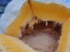 The watermelon "European" is covered in hail scars. The garden var, which was covered with potholes, worked wonders. The base of the rot was removed on the fruit. DAP 20 is about 30 pounds.