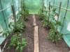 The tomato greenhouse is planted with: two 7.35 Brown, one 6.5 Rose, one 7.72 MacDonald, one 8.1 MacDonald, two 9.06 Brown and one 8.35 Strickler.