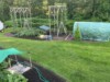 We put cross braces on the long gourd trellises with my engineering son and it really helped to stabilize them. I cleaned all of the dead vines off and we are ready to rock and roll. We also put the mesh electric fence around the patch so we can keep the hoop open on warm nights.