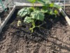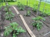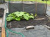 The old patch pumpkin is a bit more protected by our garden shed. We planted out tomatoes and long gourds today, so the patch is full.