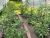 Haircut time in the tomato hut. They are in fast growth mode and ventilation is key to help with disease control. Cut leaves off close to the ground and all suckers were taken off.