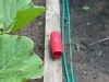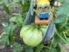 Here is the 149 Jutras long gourd stretching out on the trellis. She is 3.5 feet long today.