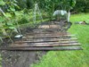 The old patch is still patiently waiting for its tomato's and long gourds. We did set up the mesh electric fence as our nights turn warmer and hoops left open.