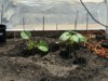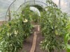 We have 2 tomato huts this year and 4 more plants outside of this one. The plants are: two 9.5 Clayton, two 9.06 Brown, two 7.28 Young, two 7.91 Trombley, 10.2 Jolivette, 8.63 Clayton, 7.44 Jolivette and 7.28 Jolivette.