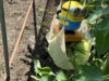 This is our model named Bob to be used to show scale as the pumpkins grow. This baby is the 839 Sandercock x self and is at 13.5 feet out from the stump. She was pollinated on June 27th.