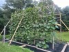 Long gourd trellis that was made in 2006 at that time a 12 ft high trellis was big enough to grow a world record. My son and I built this one on the 4 of July holiday weekend my plant was three ft long when I planted it on it. It turned out to be the first long gourd over 125 inches 126 1/2 WR