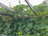 This is a 1 1/2� pvc pipe supported by an angle iron to support the stem of the long gourd. This gives the stem a big radius to prevent it from kinking too badly. I also have the junction of the stem and the vine, tied back with a pice of cloth to support the weight of the fruit.