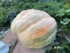 2501 This pumpkin started off white turn cream now has gone green and orange. Not very big but think she's heavy. I don't think I would keep a three lobe fruit again.