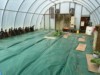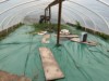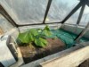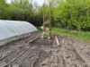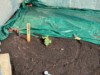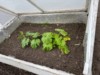 Outside the temporary cold-frame,inside the greenhouse, the soil is still chilly but making good progress.