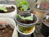 Transplantation of one of the melons. Hopefully it smartens up a bit. Looks a little tired.