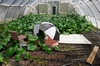This shows the full structure, but the goal is to focus on the lower right-hand side. Here the plastic has been lifted and pinned in this corner. The goal is to allow more air circulation and simply increase the volume of air that can enter the hoop house.