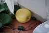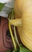 Even though the pumpkin can still abort, it is slowly growing, but the key is that it still has its youthful shine to the skin. The back-up flower will still be pollinated just in case, but hopefully this is the one that will be the final "keeper".