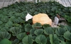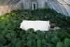 What you will notice is a painted white piece of plywood behind the pumpkin set-up. This matches the plywood that is between the layers of mill fabric as the white paint helps reduce some of the moisture absorption. However, there is no mill fabric underneath or on top of this piece. The reason for this is to provide easy grower access with a reduce chance of slipping as two pieces of mill fabric can be very low friction.