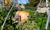 The hope is the pumpkin will grow onto this section and if needed mill fabric can be easily added, but at this point, safer grower access is preferred.