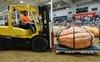 You can see the second forklift in the background getting ready to lift the pumpkin onto the scale.