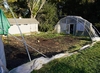 Notice that there is no "roof" plastic. This is because instead of one large sheet three are used, two on each side and then one central "roof" plastic piece will be put on. However, this is the largest and most difficult so not only does the weather need to cooperate, but having access to a few extra hands is also welcomed. just in case😉