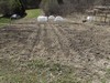 This is how my garden will start the season. Only tillage so far ahs been with a fork inside the hoop houses. I see there is a green patch of stinging nettles coming up that needs to be eliminated. On 2 or 3 of the AG plants I will plant a cover crop of rape and till it under as the plants grow to try to get some disease control. Rape has some of the same effects as mustard, just not as strong.