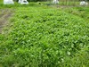 This is a 2 pumpkin plot that will get a break this year. I marked out 4 sweetcorn rows in the middle. The ends where next year's pumpkins will go have been seeded to mustard. After the mustard is tilled in and rested 3 weeks for the bio-fumigation, it will be covered with compost and planted to rape and radishes. After the sweetcorn is harvested, the stalks will be cut for compost, it will get a shot of compost and planted to mustard. That area will get the rape cover crop early next season.