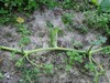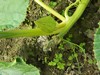We are out of the long gourd competition again. We had a skinny 7 footer hanging this morning. We didn't have a chance to tie it up on the trellis until this evening, When Jacob and I got to the garden, it was on the ground in 2 pieces. But it already had a rust spot near the blossom so it wouldn't have lasted.