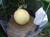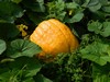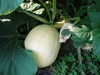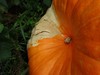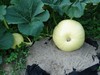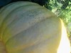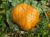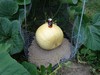 We need to move this field pumpkin back from the electric fence. Too much chance of getting eaten by the groundhog, if my shotgun doesn't get him first.