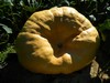 Jacob's pumpkin, grown from a seed from my 104.5 DMG. This one split the stem too, and then the stem rotted off. This one is still solid under the stem, but after seeing what happened to my 104.5, we aren't taking chances. We loaded a backup grown on the same plant.