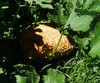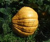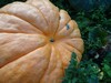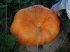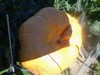The field pumpkin that the rabbit damaged healed and turned orange. No measurement, but I'm guessing 50-60#.