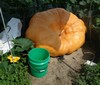 The bell pumpkin, on the same plant as the bottoms up. After the 748 plant ran into troubles, we decided to grow 2 on this plant. Both self pollinated, and the parent was a self pollinated 359 Foss. This one is estimated at 434#. We hope to get 2 thousand pound pumpkins on this plant.