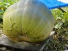 My late pollination 1047.5 gained a whopping 8 pounds over the past 4 days. At this rate it will be lucky to make 200# by October. The 1047.5 bell showed no growth by the tape, but the skinny "neck" by the stem is visibly filling out. The watermelons are struggling with weeds, the long gourds are suffering from the brown rust, the field pumpkins are losing the battle with powdery mildew, and cucumber beetles are showing up. Great fun.