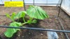 Had a nice morning drive and visit to see Gene Lrivieres patch in Connecticut today. He's a long time Grower. Chilly 50F when I arrived at 8am, but inside his 100ft x 30ft greenhouse with role up sides, the soil temp was 72F and the air temp was around 78F. Looks like Genes growing two plants back to back with about 1000 sqft for each Giant Pumpkin plant. plus some potted flowers on the far end.