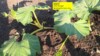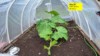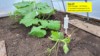 My cube pumpkin! The 2501 Bernstrom x 2222 Gienger cross looks OK. Shown at 18 DAP. This pumpkin gets a lot of hot, evening sun, so I built a Sun shade (shown on left)