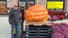 Waiting for our pumpkin to be lowered onto the scales