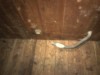 We are converting the old laundry room into another bathroom. I relocated the washer and dryer to another area and while installing the new washer drain I found this tucked up in the floor joists in the basement. I have an idea what it is and I could google it but where is the fun in that.