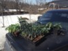 The other plants awaiting their turn and hardening off outside in my new high-tech greenhouse. The frames beside the greenhouse are made of 1/2 inch PVC and will be covered with foil emergency blankets using PVC clips. These will go inside the hoop houses covering the giant pumpkins at night. Just covering with an emergency blanket at night will increase the temp by at least 5 C with no other heat source. Just the soil heat being reflected back. An easy way to keep it warmer at night with no electricity needed.
