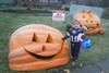 Day 8? Day 9?? Lost count.lol My daughter Liz has graduated college & is working at large day care center.This pays the bills till she finds a teaching job.She asked me to show the kids the pumpkin.They loved it several groups came out one at a time.One boy in this group yelled."take us for a ride"The other kids screamed " Yes Take us for a ride!!I told them I cant your parents would have kittens!!LOL Raffle sales almost $2200.I will spend these final two days 1st stop Spicers Orchard 5,000 people 2nd stop Holly Downtown trick or treaters over 800 kids.3rd stop Saturday night 6 to9pm 15,000 people in Howell Mi.Last day & drawing 6 pm Sunday at Spicers Orchard aprox 5,000 people constant coming & going.Monday I deliver the pumpkin or $300 cash.Im having a blast! extending my season 10 days!