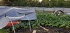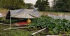 Here is the patch with cover crop started, cold frames in place and hail/shade net in progress.