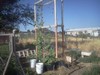 the #1 long gourd,, made to top of the trellis this morning, lol, still got over 2 months to WO.. there is a chance yet