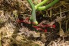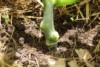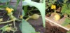 Today I discovered the first female in the tip of the main vine of the 2131.9, which was a nice thing. Less nice, so to say, was another discovery at the main vine tip. As shown in the lower part of the pic (red arrows pointing there) it looks like a slug has taken some bites from the surface of the main vine and from the male flower bud in the adjacent node.