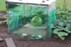 "Big Little Sister" today. Just before I took the pic I had added this shading curtain to the hut. The direct sunlight from South and West make the fruit change its color toward a brownish green, but I would like it to stay a bit more green.