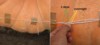 As the question came up as to which knot to use for the rope, which goes through the pumpkin lifting straps, here is a suggestion: In the past few years I used the following method (which I picked up at the weigh-off in G�rlitz-Ludwigsdorf), it�s a simple knot and bow, basically the way you would use them in the shoelace, and then (before the pumpkin was lifted) I placed the four ends (the two ears of the bow and the two simple ends, red arrow) under one of the lifting straps (sketch drawn in red), so that upon lifting the lifting strap would press the four ends against the wall of the fruit and thus prevents the bow from losening. This is especially helpful when you�re alone while lifting your pumpkin. Once the pumpkin has been lowered onto a pallet or scales, the pressure is gone and you can easily take the ends and open the bow. Alternatively (if there are more than just one person), you can hold the ends of the bow in your hand while the fruit is hanging in the lifting straps and is moved.