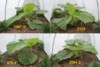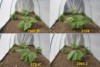 ...and the plants today. We've had some cool, cloudy, dark past couple of days, the color of the youngest one or two leaves can tell it. Anyway, the plants are now starting to develop something like a main vine. In about a week I need to release them from their huts. :)